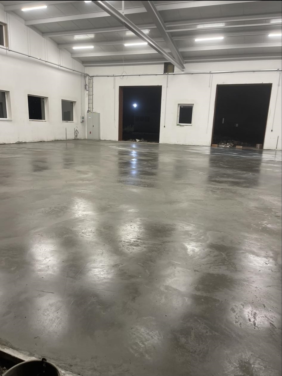 Ipari csarnokok beton padlójának kivitelezése felület-keményített, fényezett felülettel.