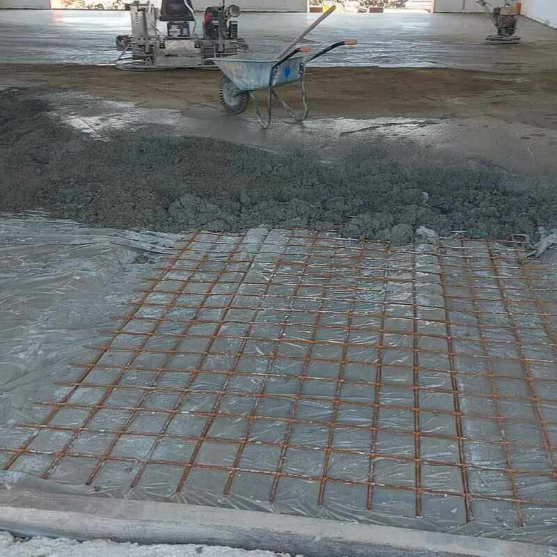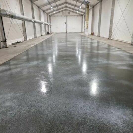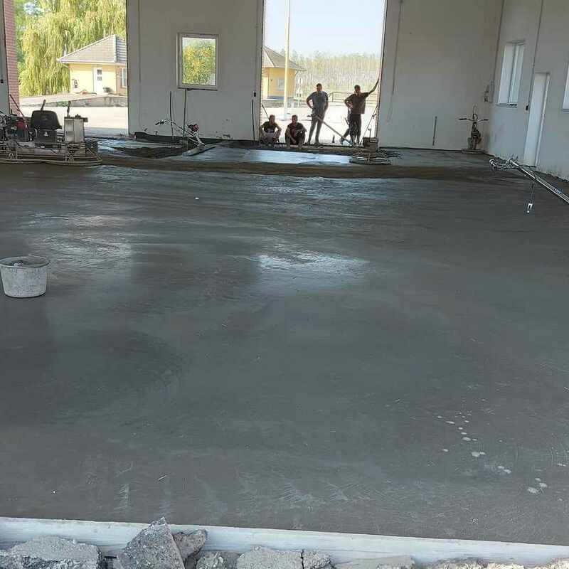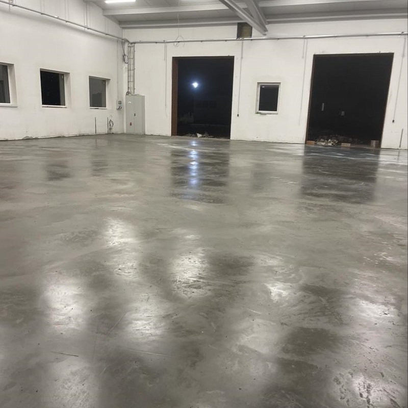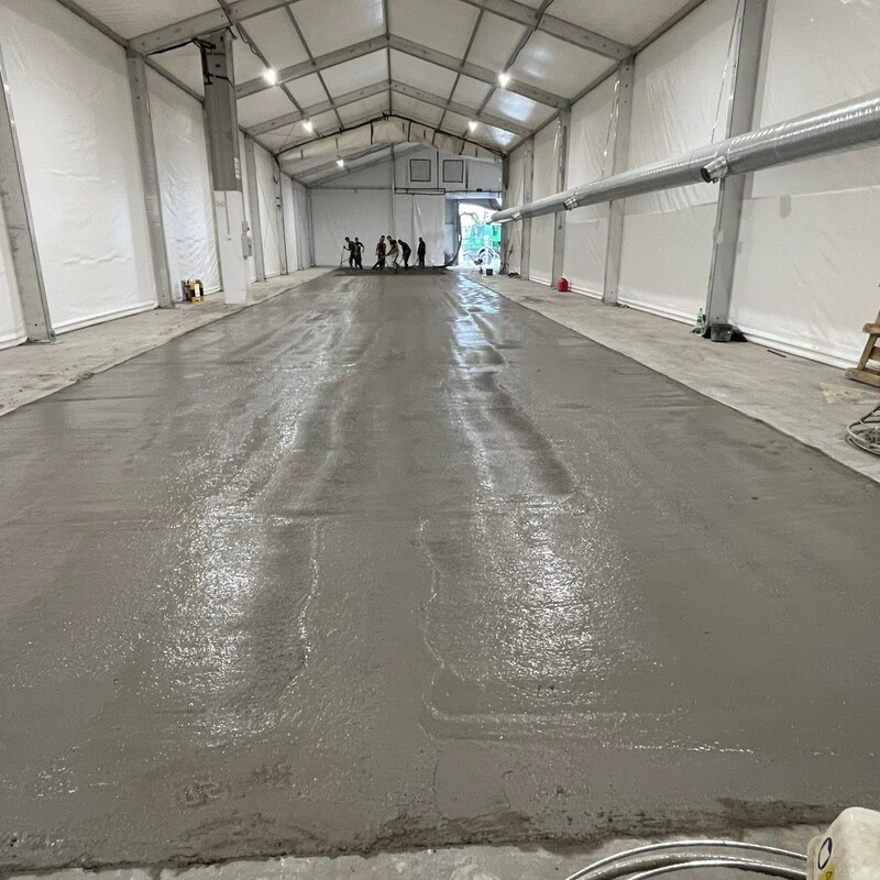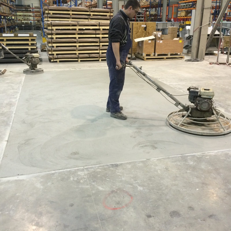 Ipari csarnokok beton padlójának kivitelezése felület-keményített, fényezett felülettel.
